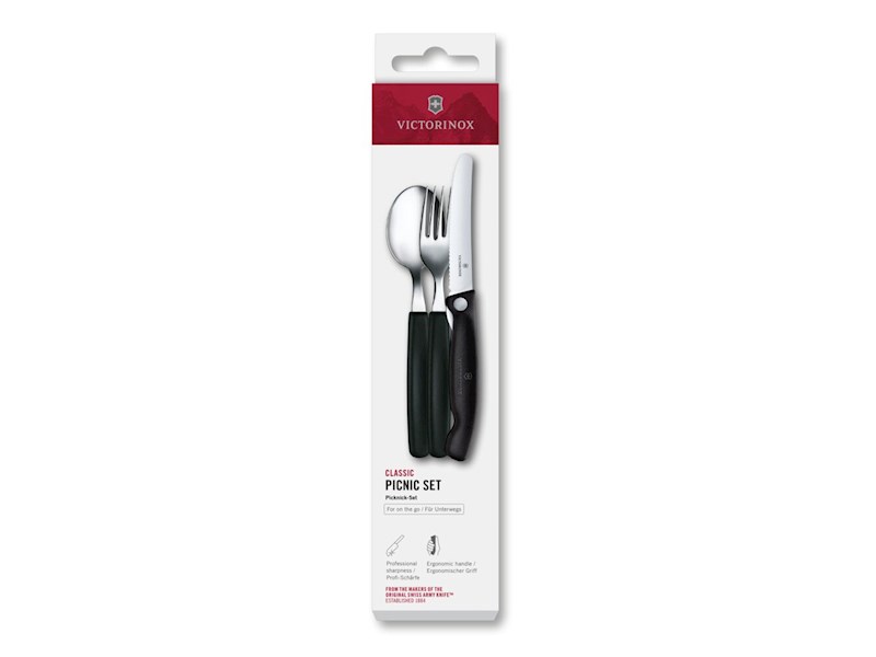 sofort, ab Lager Picknick Set, 3-Teilig - Besteck Set, Schwarz, Swiss Classic